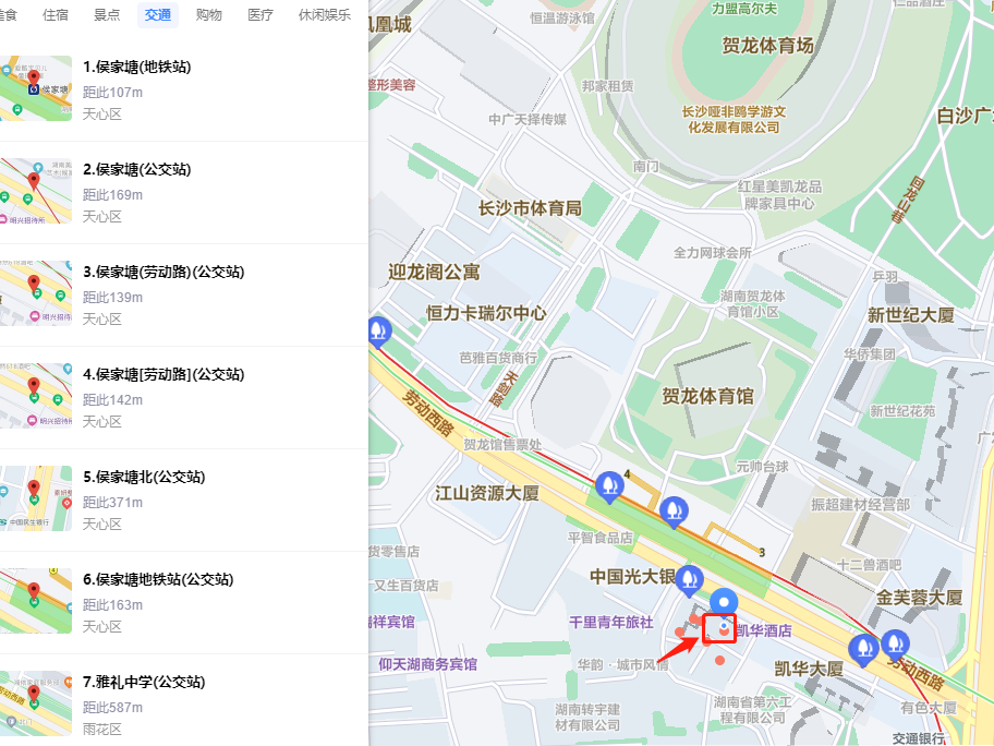 地理位置圖 天心區(qū)勞動西路房產(chǎn): 1.區(qū)位優(yōu)勢: 位于賀龍體育館田漢大劇院斜對面佳逸豪園小區(qū),地處天心區(qū)商業(yè)、生活、文化核心區(qū)域,周邊寫字樓、學校、醫(yī)院、住宅眾多,人流量大。 2.交通配套: 距侯家塘雙地鐵口20米,多個公交站點;門頭前坪及裙樓地下均有停車場。 3.醫(yī)療配套: 緊鄰湖南省人民醫(yī)院、湖南中醫(yī)藥大學第一附屬醫(yī)院、湖南省兒童醫(yī)院、中南大學湘雅二醫(yī)院等大型醫(yī)院。 4.購物配套: 緊鄰叮叮mall、摩天商業(yè)廣場、友誼商城等。 5.教育配套: 附近有華圖教育、星希望教育、中公教育、學大教育等知名教育培訓機構。 6.生態(tài)綠化配套: 5公里內(nèi)有長沙湘江風光帶、潮宗街歷史文化街區(qū)、天心閣等景區(qū)。