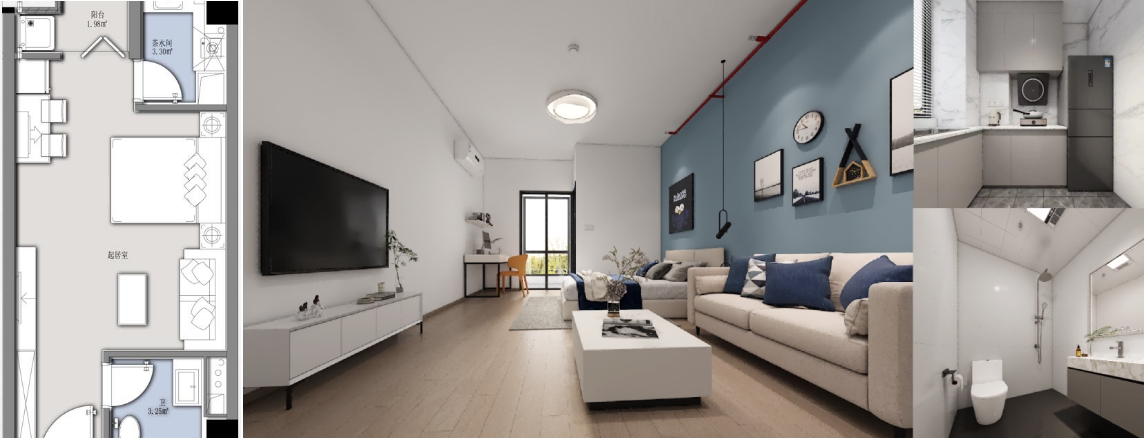 公寓類戶型圖及效果圖(套內(nèi)面積33㎡)